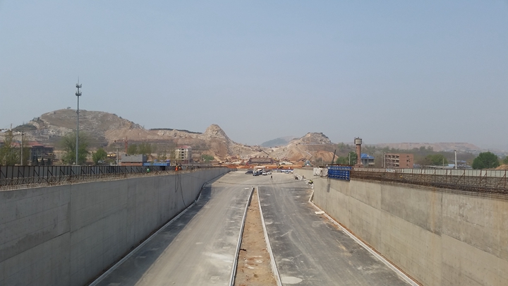道路工程起于文莊路,地塹部分左線ZK0+725-ZK0+886.65,全長161.65m,右線YK0+725-YK0+887.65,全長162.65m。地上部分北側(cè)BK1+375-BK2+025,全長650m,南側(cè)NK0+425-NK1+075,全長650m。道路橫斷面為:4米人行道+3.5米非機(jī)動(dòng)車道+3.0米綠化帶+14.75米機(jī)動(dòng)車道+13.75機(jī)動(dòng)車道+13.75機(jī)動(dòng)車道+14.75米機(jī)動(dòng)車道+3.0米綠化帶+3.5米非機(jī)動(dòng)車道+4米人行道。